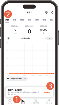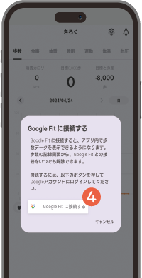 ❹ポップアップ画面から「Google Fitに接続する」をタップ